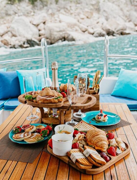 Our chef prepare your food and we deliver it in the fridge of the boat at the beginning of your stay.